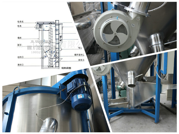 Rectangular configuration instructions: stainless steel plate 2MM thickness, channel 14 #, copper core 7.5KW motor, NSK bearing three-layer design, CNC electrical time control cabinet, shaft diameter 89mm, stainless steel roof, stainless steel diameter 300MM screw,